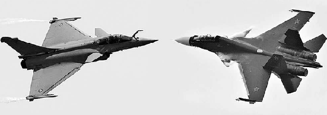 “陣風(fēng)”戰(zhàn)斗機(jī)(左)和蘇-30MKI戰(zhàn)斗機(jī)(右)