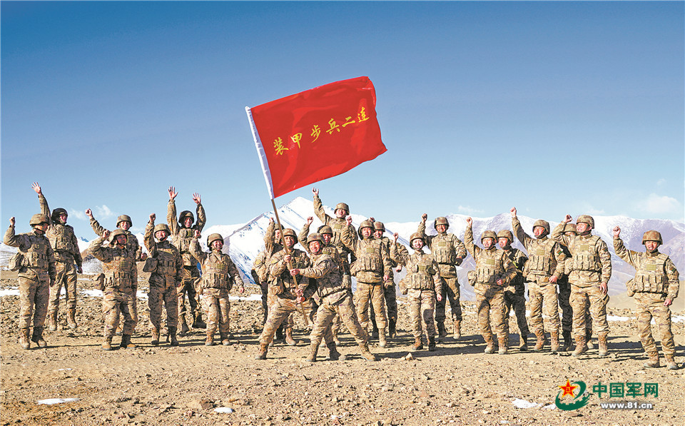 3月2日,新疆軍區(qū)某團(tuán)開展要點奪控演練。裝甲步兵二連官兵表現(xiàn)突出,揮舞連旗慶祝勝利。解放軍報記者 欒 鋮攝