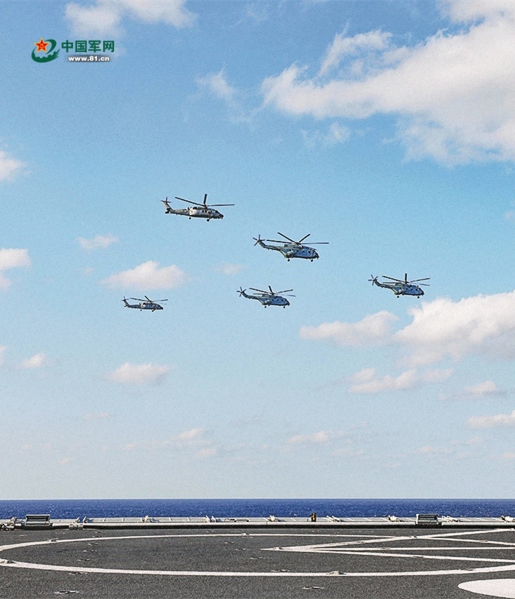 艦載直升機飛赴訓(xùn)練空域。