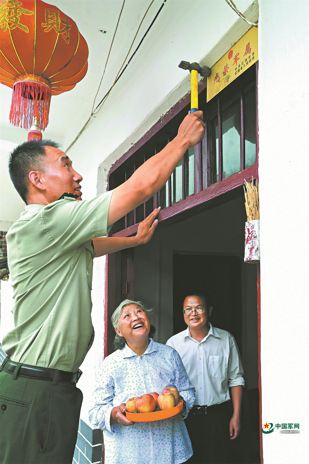 2017年1月1日,《江西省軍人軍屬權(quán)益保障條例》正式實(shí)施,在全社會(huì)營(yíng)造尊崇軍人、關(guān)愛(ài)軍屬的良好氛圍。圖為江西省井岡山市人武部官兵為軍人家庭掛“光榮軍屬”牌。