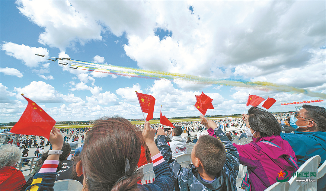 2022年8月26日,2022年空軍航空開(kāi)放活動(dòng)暨長(zhǎng)春航空展開(kāi)幕,參觀群眾為精彩的飛行表演熱情歡呼。楊 博攝