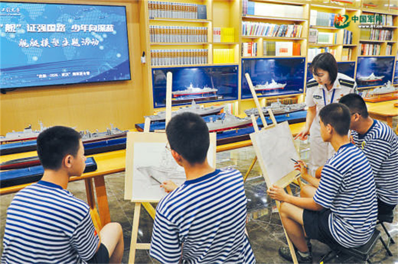 學(xué)生進(jìn)行艦艇模型繪畫創(chuàng)作。鄭洪勝 攝