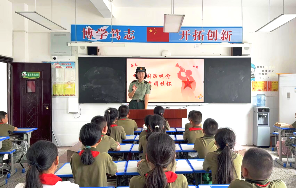 空軍工程大學(xué)某學(xué)院的宣講學(xué)員走進(jìn)駐地小學(xué),為學(xué)生們帶來了一場主題為“銘記歷史 吾輩當(dāng)自強(qiáng)”的國防教育課,讓愛國強(qiáng)軍的種子在孩子們心中生根發(fā)芽。(朱秉璽、傅紫琦、陳晟)