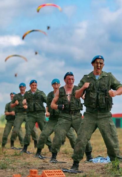 圖為俄羅斯傘兵部隊(duì)士兵在節(jié)日期間進(jìn)行表演。Vladimir Smirnov 攝