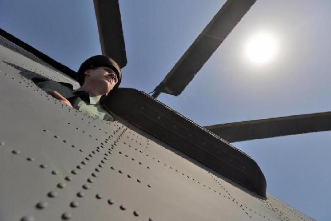 圖為俄羅斯西部軍區(qū)Levashovo機場,一名士兵將頭探出機艙。Ruslan Shamukov 攝