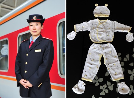 右圖:馮艷萍為孩子準(zhǔn)備的全套小睡衣,是她在母親的幫助下剪裁、縫制出來的(拼版照片,5月9日攝)。