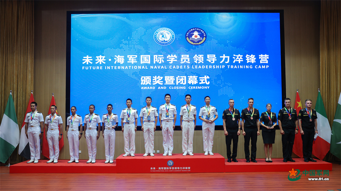 “未來·海軍國際學(xué)員領(lǐng)導(dǎo)力淬鋒營”頒獎(jiǎng)暨閉幕式合影。馬思東 攝