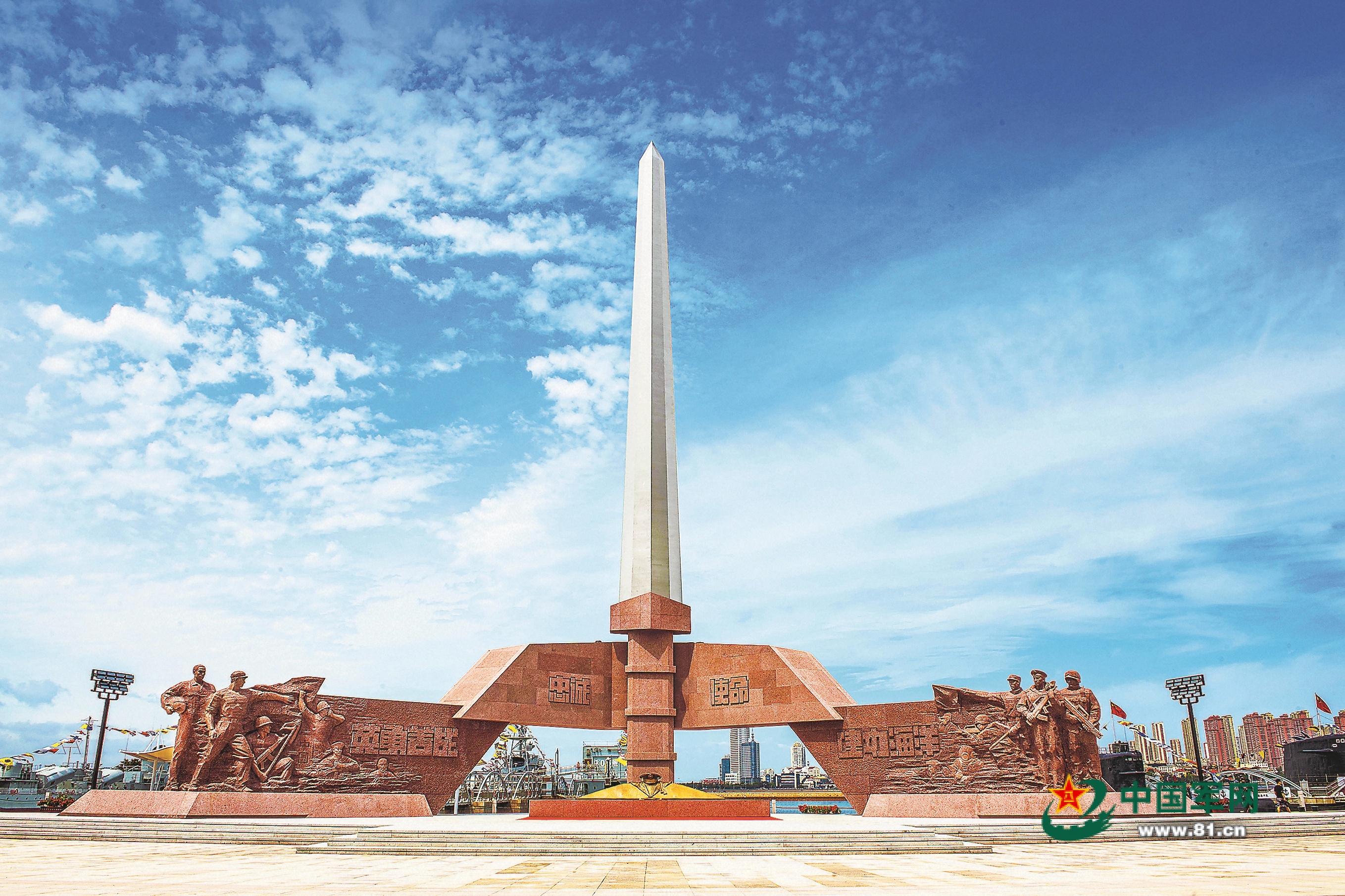 “我們的征途是星辰大海。”在海軍博物館的前廣場上,陽光照耀下的“亮劍深藍”主題雕塑在藍天白云襯托下格外醒目,雕塑整體如同起錨待發(fā)的戰(zhàn)艦,一把利劍如桅桿直插云霄。