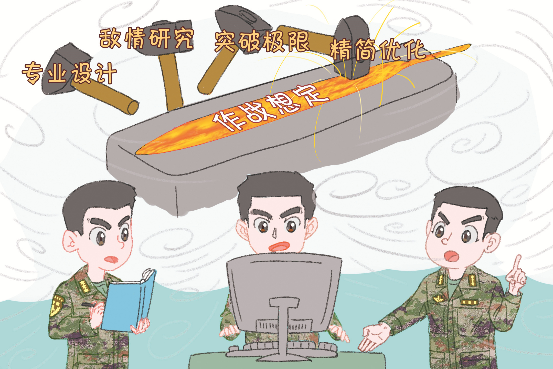 思路清晰,旗鼓重振。盡管距演練日期只剩3天,大家還是振奮精神,在作戰(zhàn)室掀起密集的“頭腦風(fēng)暴”。在一遍遍反復(fù)推倒重來的淬煉中,方案戰(zhàn)味愈改愈濃,參謀人員的收獲也越來越多。