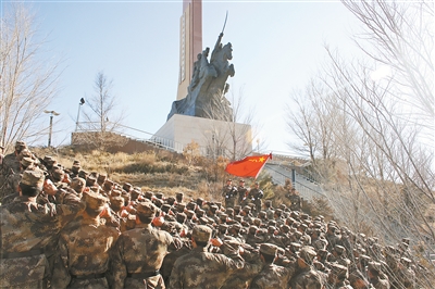 上圖:該旅官兵在女兒山革命烈士紀念碑下,向軍旗宣誓。婁立達攝
