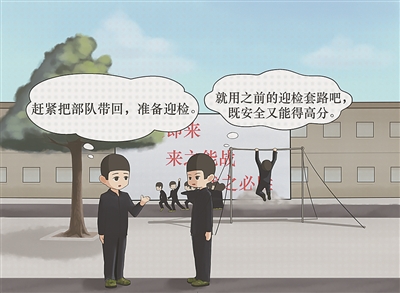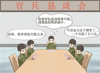 然而,部分單位開展檢查評(píng)比時(shí),機(jī)關(guān)科室各自為政、評(píng)分內(nèi)容繁冗過細(xì)、檢查標(biāo)準(zhǔn)層層拔高、查究問題矯枉過正……基層迫不得已安排迎檢“專業(yè)崗”、設(shè)置內(nèi)務(wù)“樣板間”、清空物品“格式化”、費(fèi)心勞神“補(bǔ)窟窿”……使出渾身解數(shù)“求”高分、“爭(zhēng)”先進(jìn)。如此這般,不僅沒有指導(dǎo)基層解決問題,還牽扯精力、增添壓力、削減戰(zhàn)力,背離檢查評(píng)比初衷,評(píng)出的“先進(jìn)”官兵也并不買賬。