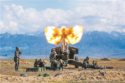6月18日,新疆軍區(qū)某炮兵團在戈壁深處組織實彈射擊訓練,通過臨機設(shè)定陣地、隨機指定目標,錘煉部隊快速反應和精確打擊能力。陳金根攝
