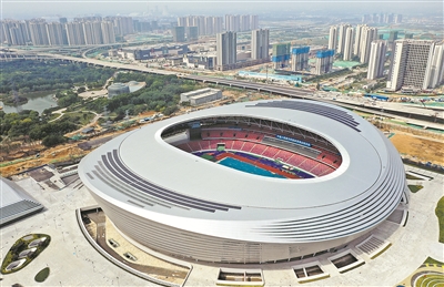 近日,鄭州奧林匹克體育中心主場館全面完工。據(jù)悉,鄭州奧體中心總建筑面積約58.4萬平方米,包括“一場兩館”,即6萬座的體育場、1.6萬座的體育館及3000座的游泳館。第十一屆全國少數(shù)民族傳統(tǒng)體育運動會開幕式將在此舉行。圖為6月25日無人機拍攝的鄭州奧林匹克體育中心體育場。 新華社發(fā)