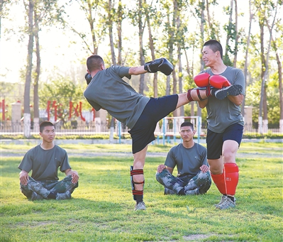 楊波正在向戰(zhàn)士們教授的課目叫歐式泰拳。這是他利用休假時(shí)間專(zhuān)門(mén)跑到北京拜師學(xué)來(lái)的。一回到連隊(duì),他就將其融入格斗教學(xué)訓(xùn)練中。