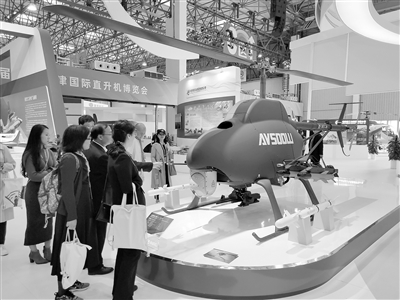 圖為直博會上展出的AV500W無人直升機。姜佳林攝