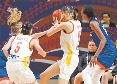 上圖:中國女籃球員韓旭(右二)在比賽中持球進攻。 新華社發(fā)