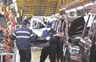 連日來,河北省定州市堅持一手抓疫情防控、一手抓恢復生產(chǎn),在全力戰(zhàn)“疫”的同時,有序組織工業(yè)企業(yè)復工復產(chǎn)。圖為2月16日,工人在位于河北定州的河北長安汽車有限公司生產(chǎn)車間工作。 新華社發(fā)