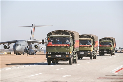 2月13日,軍隊增派2600名醫(yī)護(hù)人員支援武漢。當(dāng)日上午,11架軍用運輸機陸續(xù)在武漢天河機場降落。運力支援隊迅速抵達(dá)指定位置,各項工作無縫對接。