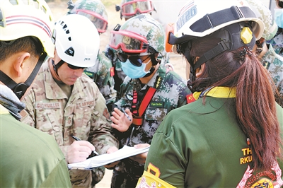 3月1日至4日,聯(lián)合軍演人道主義救援減災(zāi)實(shí)兵演練在泰國(guó)北柳府國(guó)家減災(zāi)訓(xùn)練中心舉行,來(lái)自中國(guó)、美國(guó)、泰國(guó)和新加坡等7國(guó)的200余人參加演練。此次演練模擬的是泰國(guó)南部遭遇臺(tái)風(fēng)和暴雨,導(dǎo)致嚴(yán)重的洪災(zāi)、泥石流和建筑物倒塌等次生災(zāi)害,人員傷亡和財(cái)產(chǎn)損失嚴(yán)重;中美等國(guó)迅速向受災(zāi)地區(qū)部署力量實(shí)施救援;多國(guó)部隊(duì)根據(jù)受災(zāi)國(guó)意愿,組成協(xié)調(diào)中心,指揮各國(guó)救援力量。