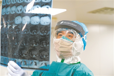 為危重癥患者吸痰、帶患者到影像室拍CT、與戰(zhàn)友交流救治經(jīng)驗(yàn)……這一天,在“紅區(qū)”的幾個(gè)小時(shí)里,宋立強(qiáng)一刻也沒停下來(lái)。