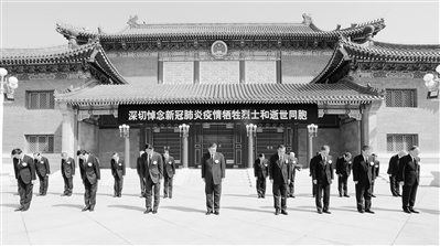 10時整,防空警報鳴響,習近平等向新冠肺炎疫情犧牲烈士和逝世同胞默哀。