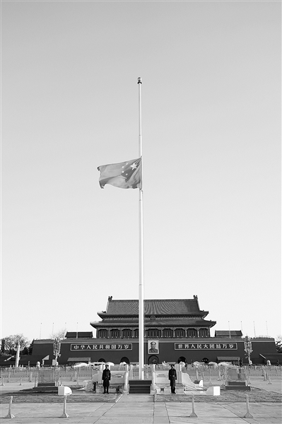 今天,北京天安門、新華門和全國人大常委會、國務院、全國政協(xié)、中央軍事委員會、最高人民法院、最高人民檢察院所在地,全國和駐外使領館下半旗志哀,全國停止公共娛樂活動,以表達全國各族人民對抗擊新冠肺炎疫情斗爭犧牲烈士和逝世同胞的深切哀悼。