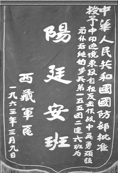 戰(zhàn)后,六班用生命叫響“兩不怕”血性口號的英雄事跡很快傳遍了部隊,西藏軍區(qū)為六班記集體一等功,為陽廷安追記一等功。1963年,六班被國防部批準授予“陽廷安班”榮譽稱號,授予“陽廷安班”戰(zhàn)旗一面,并樹為“四好標兵班”。