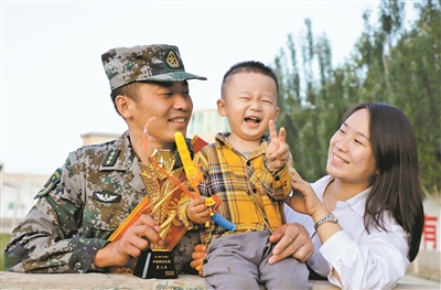 5月8日,昆侖山下,新疆喀什軍分區(qū)軍人運動會暨創(chuàng)破紀錄比武競賽拉開帷幕,數百名官兵同臺競技,多項課目紀錄被打破。圖為比武中獲獎選手與家人共享榮光。李小龍攝