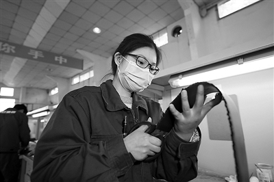 在家期間,景云秋最擔(dān)心的就是丟失了手感。為此,她每天都拿著碎花布和剪刀,練習(xí)裁剪工藝。沒(méi)想到上班第一天,就接到了任務(wù),之前在家的練習(xí)看來(lái)沒(méi)白練。為了確保膠圈加工質(zhì)量,景云秋先對(duì)膠面進(jìn)行壓制、冷卻,待一切準(zhǔn)備就緒后,她拿起尖頭剪小心翼翼地將邊緣余膠剪去,一個(gè)完整的金屬橡膠硫化件便制作完成。經(jīng)過(guò)檢驗(yàn),產(chǎn)品合格。