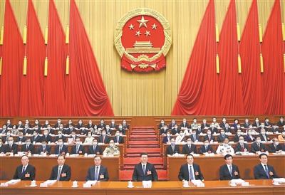 習(xí)近平、李克強(qiáng)、汪洋、王滬寧、趙樂(lè)際、韓正、王岐山和大會(huì)主席團(tuán)成員在主席臺(tái)就座。
