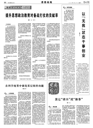 提升思想政治教育對備戰(zhàn)打仗的貢獻(xiàn)率