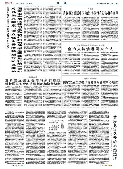 支持建立健全香港特別行政區(qū)維護(hù)國家安全的法律制度和執(zhí)行機(jī)制