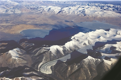 臨近阿里上空,飛機(jī)開始下降高度,機(jī)翼下的雪山、冰舌、湖泊,還有蜿蜒在山間溝壑的公路,皆清晰可見。我突然意識(shí)到,機(jī)翼下那條黑色游龍般的新藏公路,不就是阿里前輩軍人走出來(lái)的天路嗎!