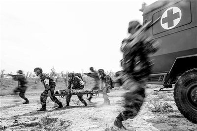 近日,新疆軍區(qū)某紅軍團組織衛(wèi)勤人員開展火線救治、戰(zhàn)術(shù)救治等課目演練,錘煉官兵的戰(zhàn)場救護能力。圖為官兵正在轉(zhuǎn)運“傷員”。閆鴻浩攝