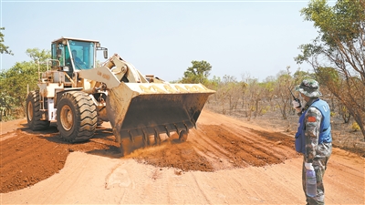 當(dāng)?shù)貢r(shí)間6月21日,我第10批赴南蘇丹維和工兵分隊(duì)圓滿完成聯(lián)南蘇團(tuán)賦予的4條補(bǔ)給線施工任務(wù)。該任務(wù)共耗時(shí)7個(gè)月,道路總長486公里,連接南蘇丹3個(gè)州和上百個(gè)城鎮(zhèn),通車后將會(huì)給當(dāng)?shù)亟?jīng)濟(jì)發(fā)展注入新的動(dòng)力,便于聯(lián)南蘇團(tuán)對偏遠(yuǎn)地區(qū)實(shí)施人道主義救援。上圖為道路施工現(xiàn)場。