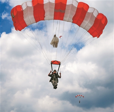 6月底,第77集團(tuán)軍某旅緊貼任務(wù)特點(diǎn),開展傘降實(shí)跳訓(xùn)練,檢驗(yàn)提升部隊(duì)全時(shí)域空降作戰(zhàn)能力。抵達(dá)傘降空域后,官兵依次躍出機(jī)艙,朵朵傘花在天空綻放。