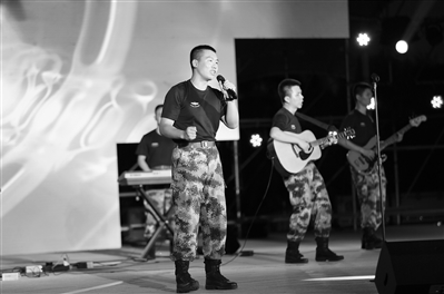 “一提起空軍,老百姓想到的都是飛行員?!毙煺裣栌悬c郁悶?!昂尾辉诟柙~中凸顯兵種文化的內(nèi)涵,寫一首唱兵種的歌呢?”隊員蘇樊點醒了大家。說干就干,樂隊每人掏出紙和筆,圍在音響上創(chuàng)作起來。