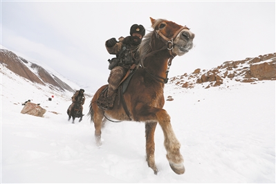早飯過(guò)后,迎著凜冽的寒風(fēng),記者和巡邏分隊(duì)的戰(zhàn)士們騎著軍馬出發(fā)了。高原惡劣的自然環(huán)境總喜歡展示它無(wú)比殘酷的威力,風(fēng)一個(gè)勁地往脖領(lǐng)里鉆,冷颼颼的。