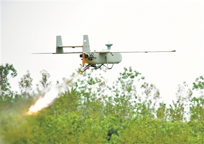 上圖:無(wú)人機(jī)點(diǎn)火起飛。