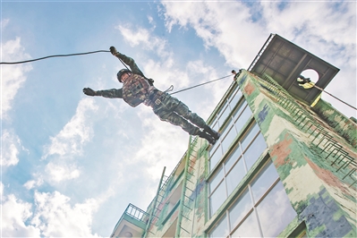連日來(lái),武警廣西總隊(duì)南寧支隊(duì)開(kāi)展攀登、索降等課目強(qiáng)化訓(xùn)練,錘煉特戰(zhàn)隊(duì)員單兵技戰(zhàn)術(shù)。圖為特戰(zhàn)隊(duì)員進(jìn)行飛身下滑訓(xùn)練。本報(bào)特約通訊員 余海洋攝