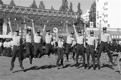 ④:陸軍工程大學2020級研究生開學典禮上新學員歡呼雀躍的場景。 朱桁岡攝