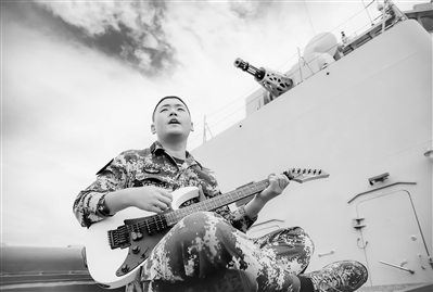 上戰(zhàn)艦之前,李陽想的是“苦熬一段沒網(wǎng)、沒音樂”的日子,兩年后就退伍。誰知,如今艦上也有電子琴、吉他,閑暇時(shí),他又?jǐn)[弄起了樂器,和艦上戰(zhàn)友組成一個(gè)“海上樂隊(duì)”。