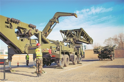 11月5日,武警第一機(jī)動(dòng)總隊(duì)某支隊(duì)組織重型支援橋架橋訓(xùn)練,錘煉部隊(duì)?wèi)?yīng)急救援能力。 王 磊攝