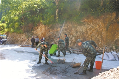 圖③:武警官兵到福建省寧德市壽寧縣上黨村幫老百姓修路。