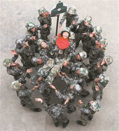 日前,第73集團軍某新兵大隊新戰(zhàn)士賴勇飚,第一次實彈射擊考核取得50環(huán)的好成績。戰(zhàn)友為他戴上大紅花,把他拋向空中,向他表示祝賀。謝文劍攝