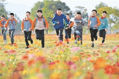 截至2019年底,我國學(xué)前教育毛入園率達(dá)到83.4%,比上年提高1.7個百分點,九年義務(wù)教育鞏固率達(dá)94.8%。圖為世界兒童日到來之際,在江西省宜春市袁州區(qū)寨下中心小學(xué),學(xué)生們在花田邊玩耍。