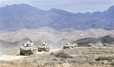 上圖:新疆軍區(qū)某師合成團(tuán)快速機(jī)動(dòng)。