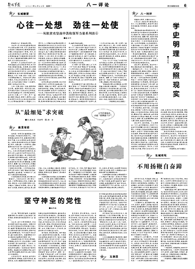 從啞鈴最細(xì)處求突破,還應(yīng)堅(jiān)持辯證的眼光。一方面,每項(xiàng)工作都會(huì)有薄弱點(diǎn),有時(shí)缺陷恰恰存在于優(yōu)長(zhǎng)之中。比如,信息化武器裝備和信息化作戰(zhàn)中,龐大的統(tǒng)一性中有相當(dāng)?shù)囊蕾囆?;?yán)密的系統(tǒng)性中有明顯的脆弱性;無(wú)縫的鏈接性中有眾多的可擊性。另一方面,盡管“最細(xì)處”意味著“弱點(diǎn)”“不足”,但又常常積蓄著“后發(fā)優(yōu)勢(shì)”。只要精準(zhǔn)發(fā)力,也可彎道超車。楊業(yè)功在訓(xùn)練中“哪壺不開(kāi)提哪壺”,大幅度縮短了導(dǎo)彈發(fā)射的準(zhǔn)備時(shí)間,提高了導(dǎo)彈命中精度;馬偉明年復(fù)一年對(duì)我國(guó)海軍艦艇電力系統(tǒng)這一薄弱環(huán)節(jié)實(shí)施攻關(guān),實(shí)現(xiàn)了我國(guó)艦船動(dòng)力從落后到引領(lǐng)的跨越;海外媒體曾預(yù)計(jì)中國(guó)艦載機(jī)成功應(yīng)用至少需要一年半時(shí)間,沒(méi)想到我們只用了兩個(gè)多月。這背后,是“航空工業(yè)英?!绷_陽(yáng)和他的團(tuán)隊(duì)自主創(chuàng)新,將殲-15艦載機(jī)從設(shè)計(jì)制造到首飛的周期縮短40%……