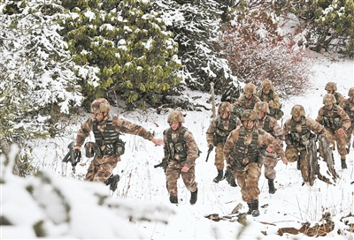 4月2日,西藏軍區(qū)某旅偵察分隊在陌生地域冒雪進行訓(xùn)練。