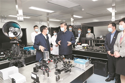 清華大學主樓二層,展示了學校近年來重點教學科研成果。習近平聽取了關于增強自主創(chuàng)新能力、助力世界主要科學中心和創(chuàng)新高地建設、提高人文社會學科教育研究水平等情況介紹,對清華大學取得的成績給予充分肯定。習近平指出,要堅持中國特色社會主義教育發(fā)展道路,充分發(fā)揮科研優(yōu)勢,增強學科設置的針對性,加強基礎研究,加大自主創(chuàng)新力度,并從我國改革發(fā)展實踐中提出新觀點、構建新理論,努力構建中國特色、中國風格、中國氣派的學科體系、學術體系、話語體系。